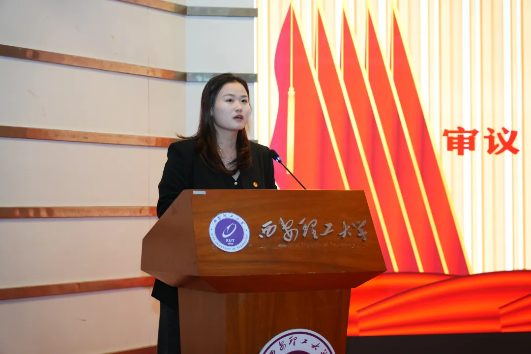 闫如玉代表第十二届委员会所作的题为《强基固本育新人 砥砺奋进建新功》的工作报告。报告系统回顾了过去五年学院共青团在思想铸魂、组织强基、实践赋能、服务暖心四大方面取得的显著成果。
