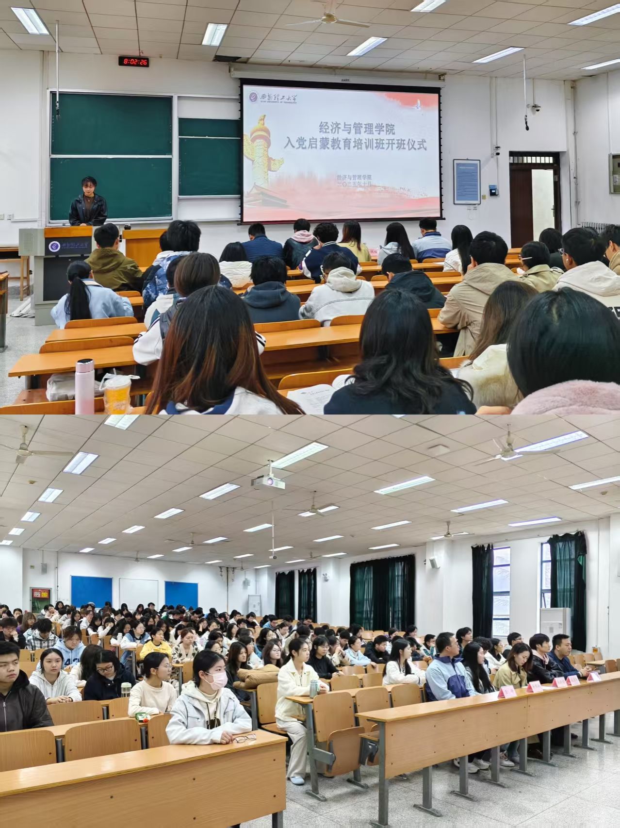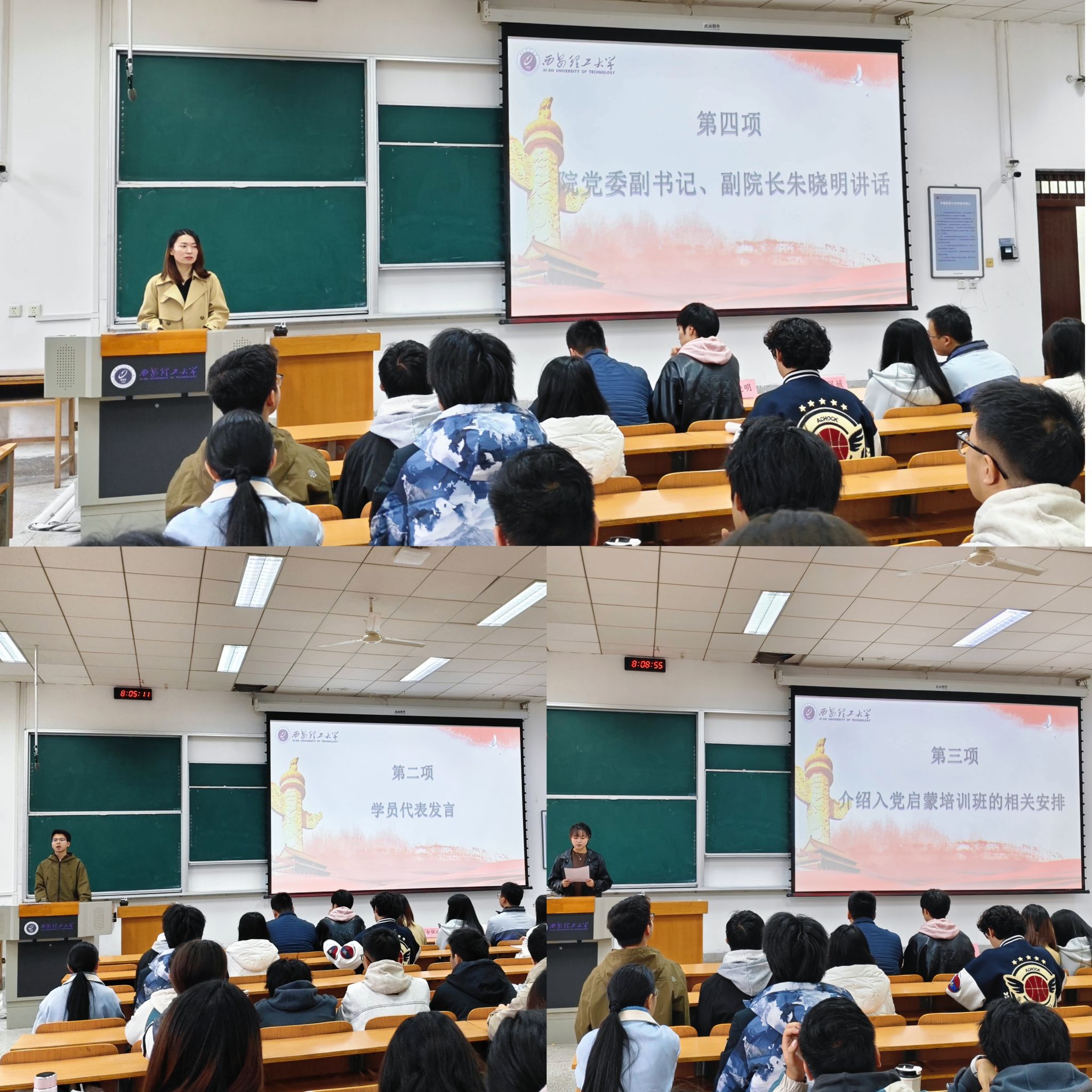 为引导学院广大青年学生深入了解党的历史、宗旨和使命,明确入党动机,坚定理想信念,积极向党组织靠拢,10月31日上午,bv1946伟德官网在教10-401教室举行了2025年入党启蒙教育开班仪式暨第一讲《端正入党动机,坚定理想信念》活动。学院党委副书记兼副院长朱晓明,学工办主任余佩媛,辅导员任程宇、毛飞飞、王峥及培训班全体学员参加了本次活动,开班仪式由黄博琳主持。