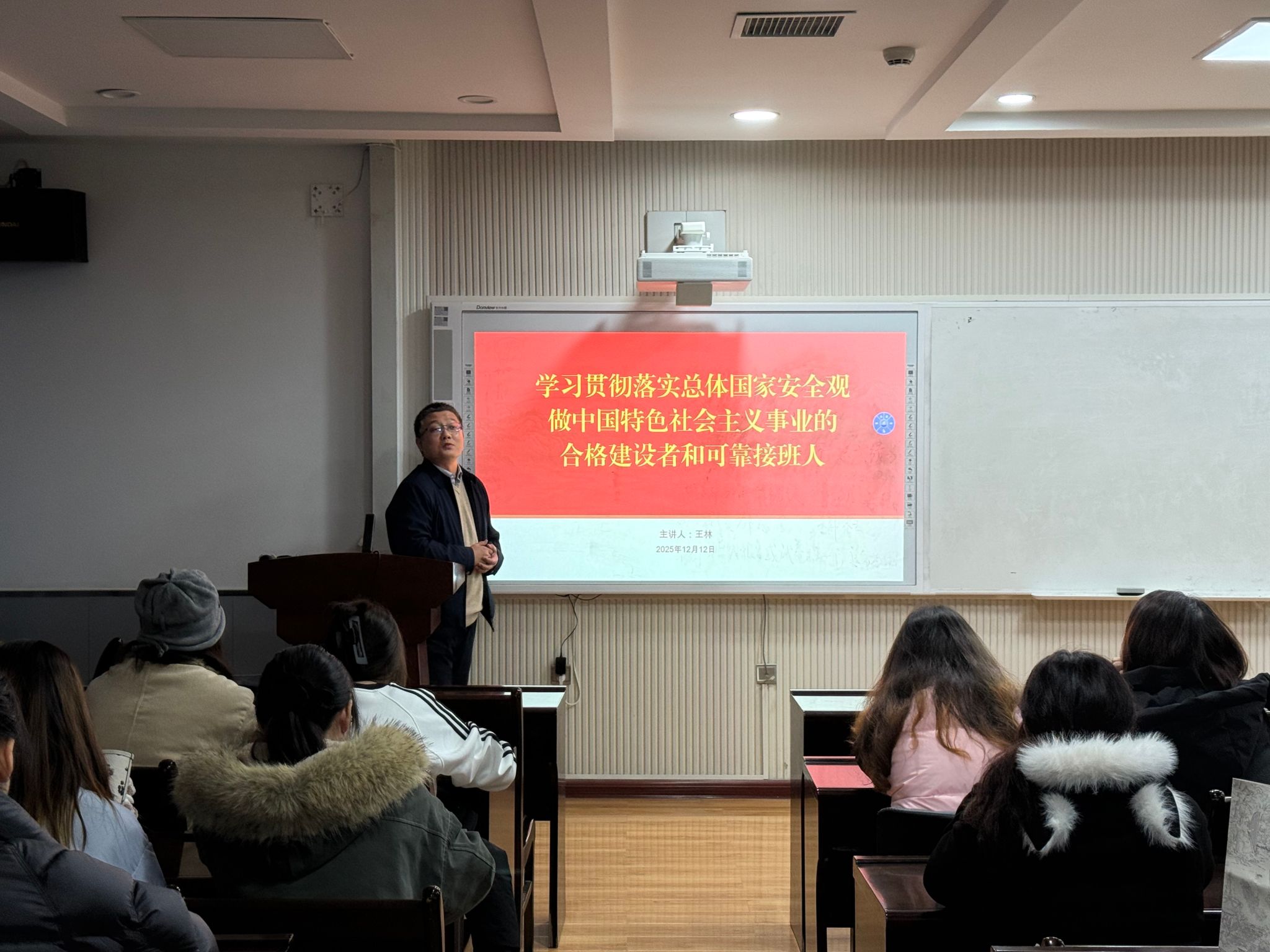 为深入学习贯彻总体国家安全观,切实增强入党发展对象的国家安全意识与责任担当,12月12日下午,bv1946伟德官网特别邀请数学学院党委书记王林,为学院入党发展对象开展专题党课培训。本次党课以“总体国家安全观”为核心主题,旨在引导青年学子树立正确的国家安全观,将个人成长融入国家发展大局。