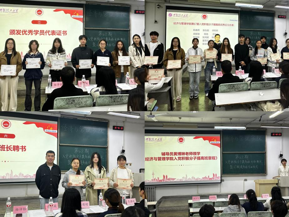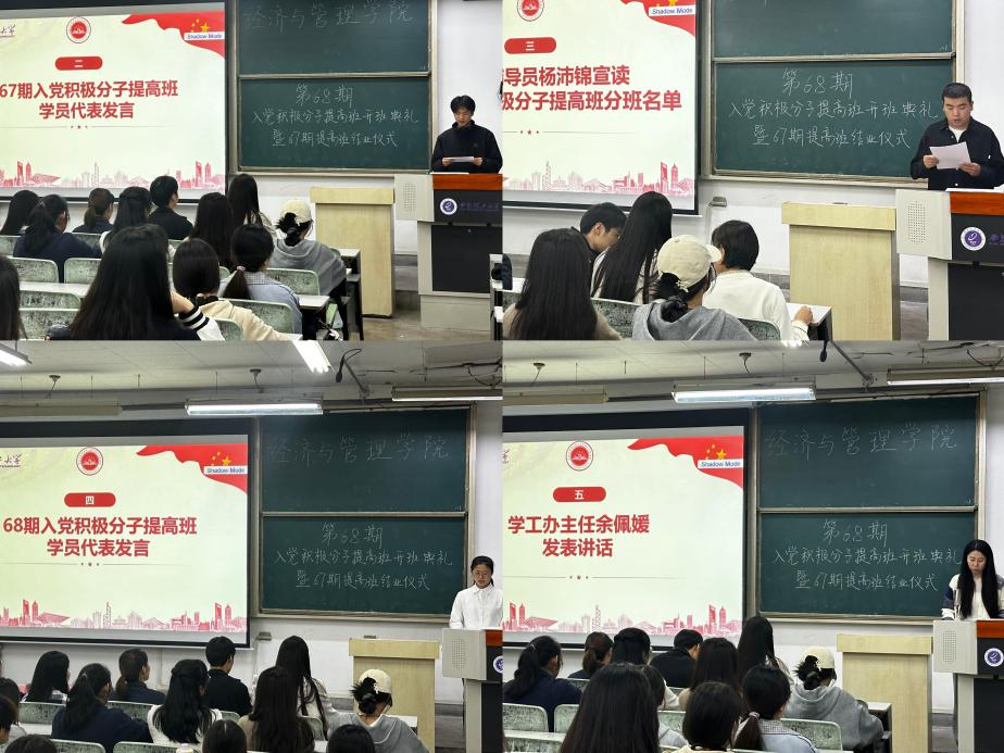 仪式在庄严的国歌声中拉开帷幕。首先,往期学员代表张弘毅上台发言。他结合自身在提高班的学习经历和成长感悟,分享了在党课学习、实践活动中的收获与体会,给新一期提高班学员传授经验,鼓励同学们端正心态、积极行动、以谦逊的品质学习交流。随后,学工办辅导员杨沛锦老师宣读了68期提高班分班名单。数管241班张雨佳代表新一期提高班学员发言,她表示,将以饱满的热情、昂扬的斗志投入到课程学习中去,严格遵守提高班的各项规章制度,认真学习党的理论知识,始终牢记“为人民服务”的初心,始终保持“求真、求实、求进”的态度,在思想上、行动上向党组织靠拢,让青春在为党和人民事业的奋斗中绽放光彩。学工办主任余佩媛发表讲话,她对本期入党积极分子提高班的顺利开班表示热烈祝贺,并对全体学员提出了殷切期望,她希望同学们要以“学”为基,筑牢思想之基,补足精神之钙;要以“行”为要,锤炼实干本领,彰显先锋本色;要以“志”为帆,永葆初心使命,勇担时代重任。接着,学工办辅导员王若婷老师为第67期提高班优秀学员颁奖、学工办辅导员毛飞飞老师为第67期提高班优秀征文获奖学员颁奖、学工办辅导员杨沛锦老师为第67期提高班班长颁发聘书。第67期提高班优秀学员们的榜样示范,给新一期提高班学员树立了前进的方向和榜样的引导,希望新学员用于争先,认真在提高班的培养中得到成长。最后,辅导员黄博琳老师领学了《bv1946伟德官网入党积极分子提高班章程》。
