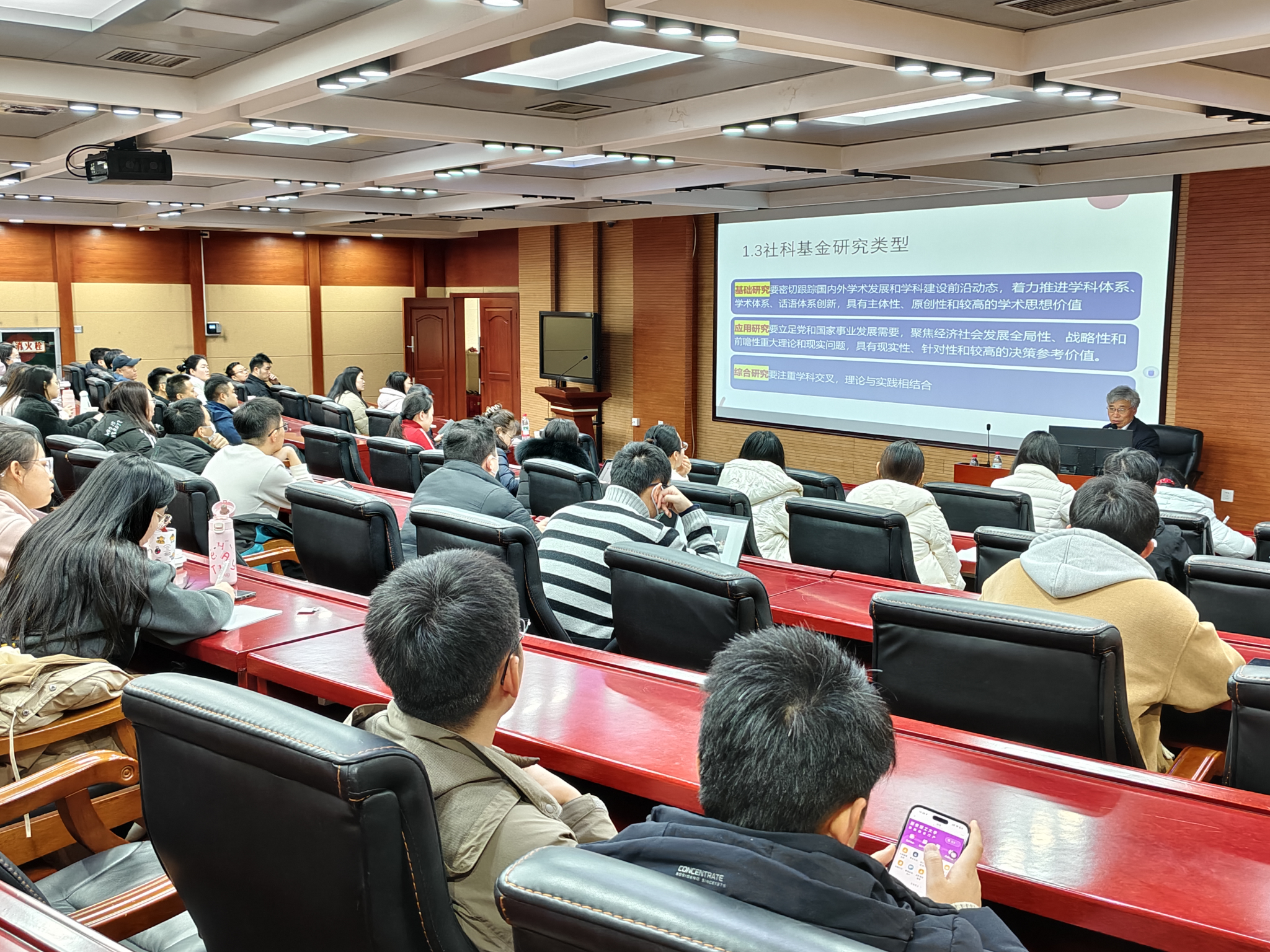 黄鲁成教授享受国务院政府特殊津贴,长期从事科技与产业管理研究、新兴技术未来分析理论方法研究。讲座现场,黄鲁成教授围绕国家基金项目申报的核心策略与方法展开系统阐述。结合自身经验,对国家基金的发展趋势、选题原则、撰写规范和课题设计等关键环节进行了深入解析与讲解。