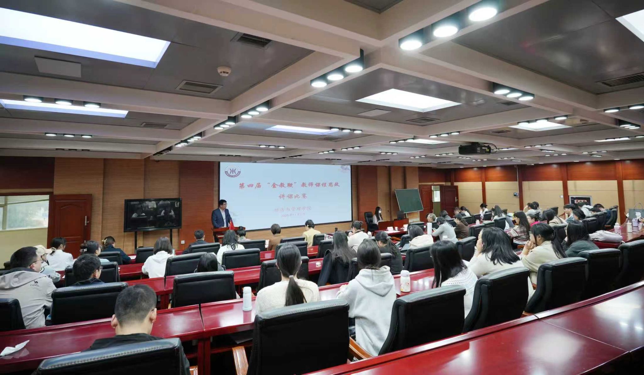 为深入学习贯彻习近平新时代中国特色社会主义思想,落实立德树人根本任务,提升育人实效, 增强思政引领力,“坚持思政课建设和党的创新理论武装同步推进、思政课程和课程思政同向同行,把思政教育‘小课堂’和社会‘大课堂’有效融合起来”,11月5日下午,bv1946伟德官网在学院EMBA报告厅举办第四届“金教鞭”教师课程思政讲课比赛决赛。比赛由副院长甘凯主持。