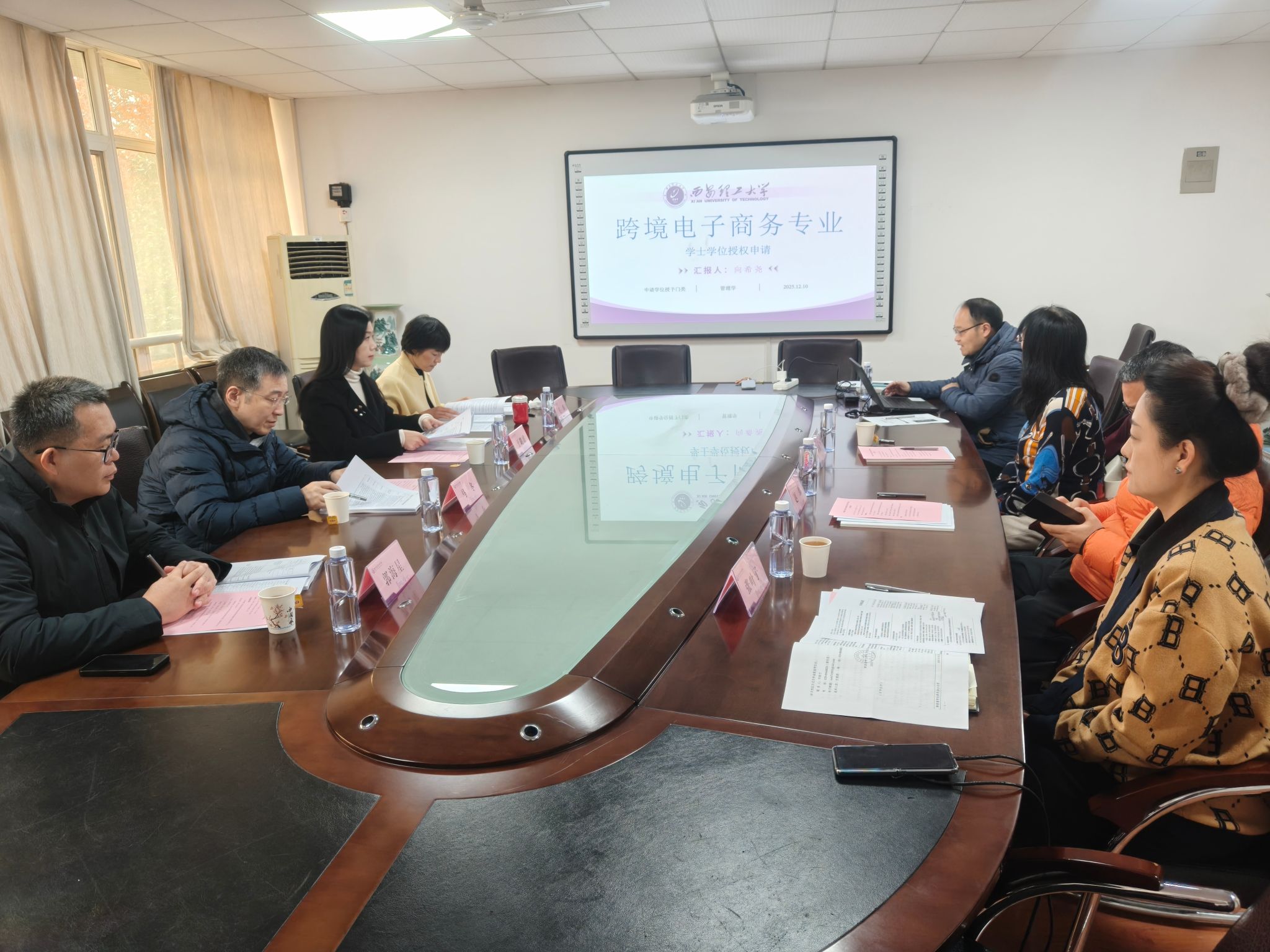 12月10日上午,bv1946伟德官网在曲江校区教11-328会议室,召开2025年新增“跨境电子商务”专业学士学位授予权评审会。评审专家组由教育部高等学校教学指导委员会委员、西安工程大学教务处处长马冬教授,陕西省高等学校教学指导委员会委员、西安财经大学于璐瑶教授,三秦学者、西北大学王珏教授,国网陕西信通公司书记、副总经理,高级经济师郭海星,bv1946伟德官网副院长赵璟教授,陕西省高等学校教学指导委员会委员、1946伟德官方网站苏菊宁教授组成。